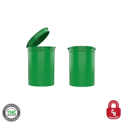 These child-resistant pop top bottles are highly functional packaging option for both recreational flower and medical flower. These pop tops' opaque finish makes them resistant to harsh sunlight to keep your product fresh and state compliant.